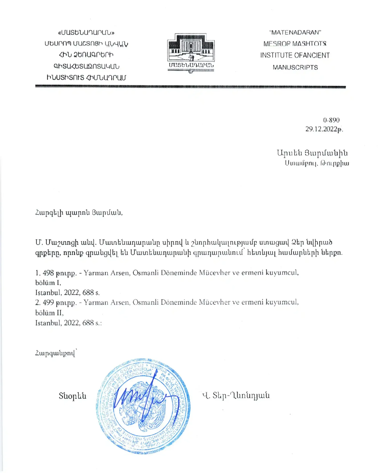 MATENADRAN MESROP MASHTOTS INSTITUE