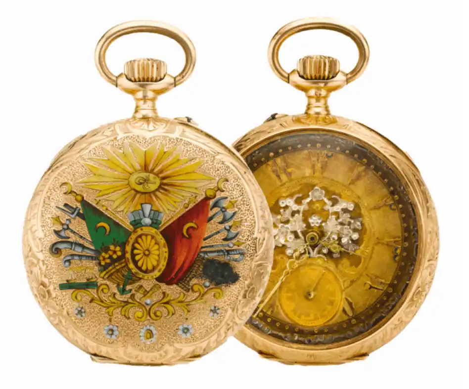 The “Hamidiye” enameled gold pocket watch manufactured by the Goldsmith J. Tolayan company.